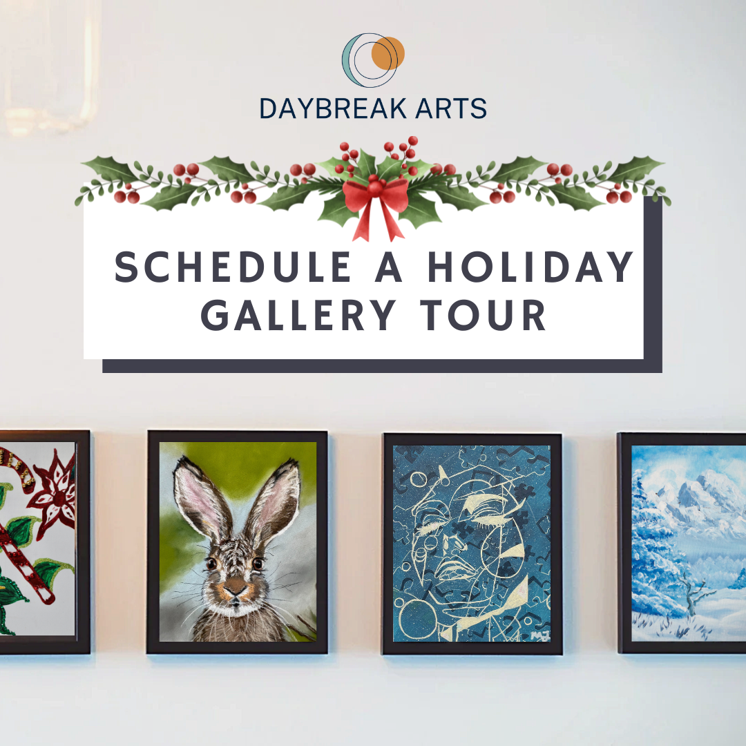 Looking for a meaningful way to celebrate the season? Schedule a private, customized gallery tour at Daybreak Arts this holiday season and support Daybreak Artists. Explore a vibrant collection of diverse artworks and reproductions in every style, medium, and price range.